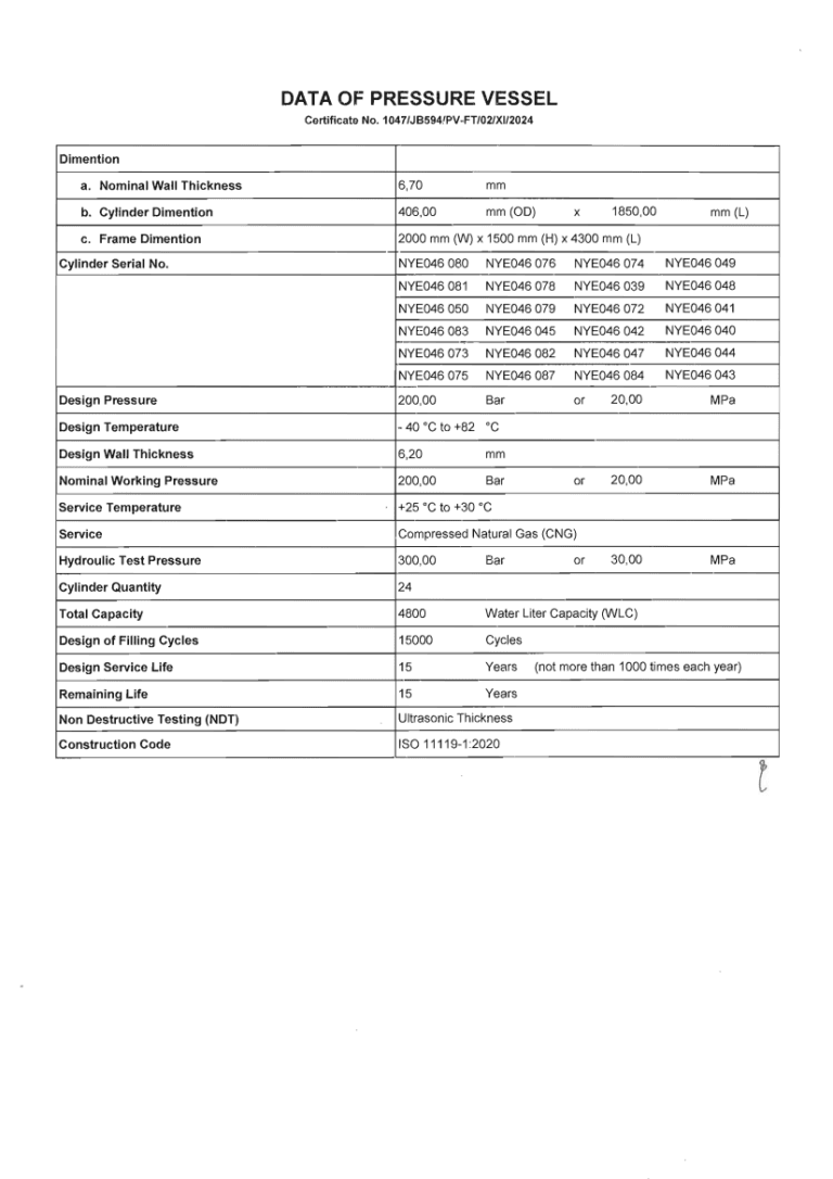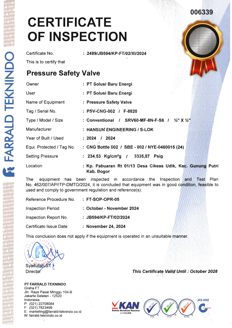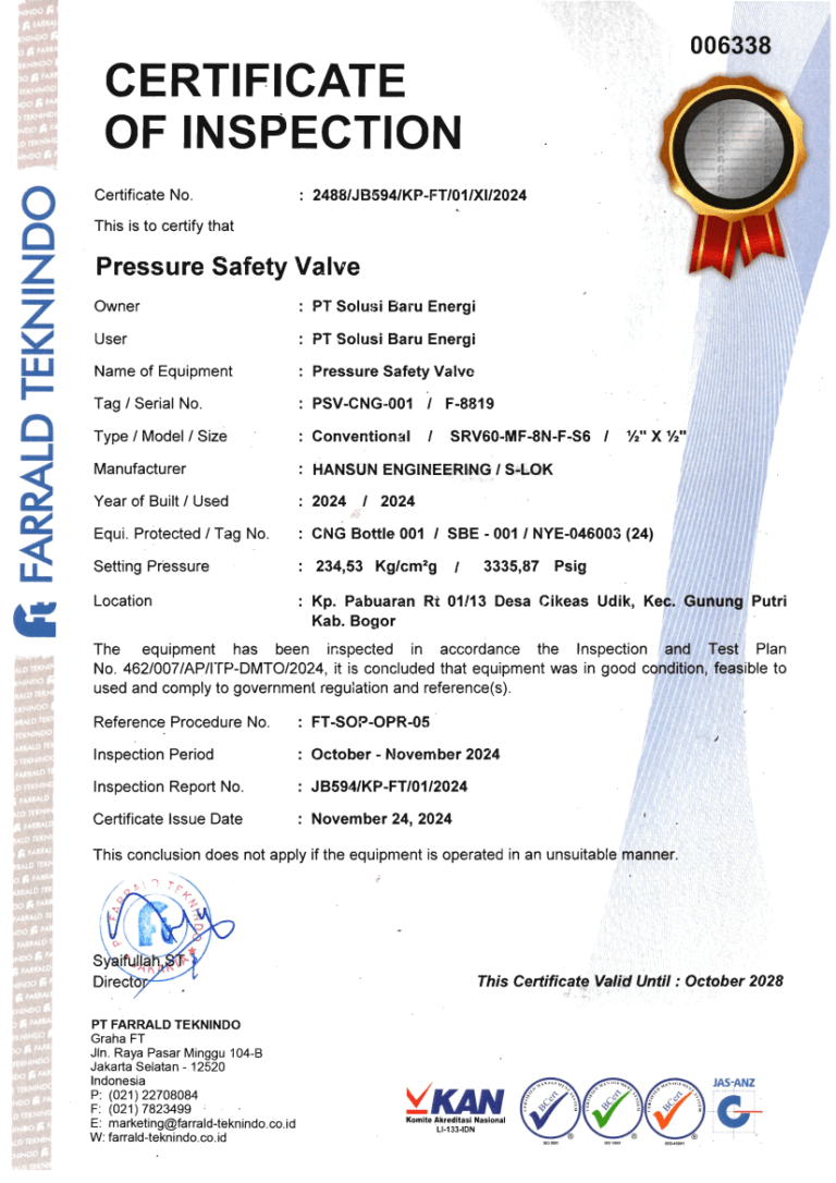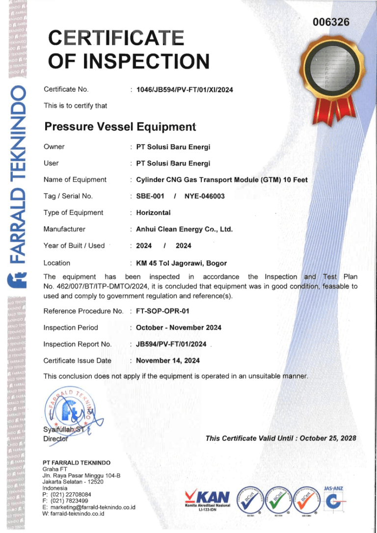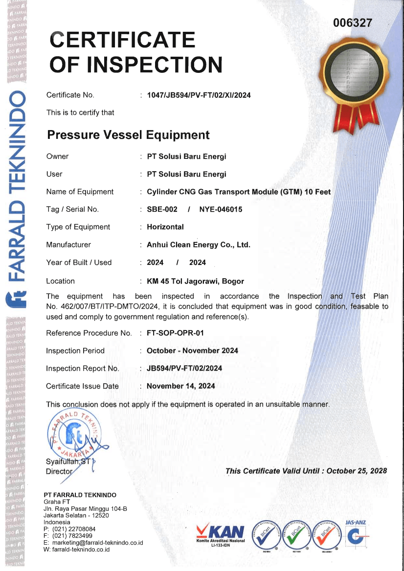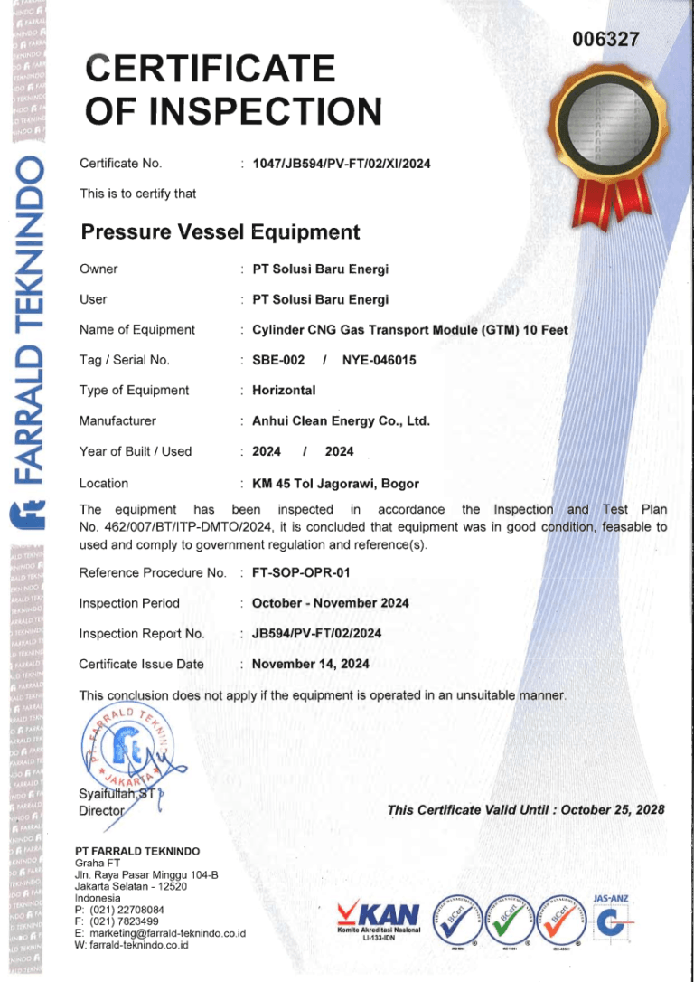 COI ( Certification Of Inspection) untuk GTM (  Gas Transpot Module )