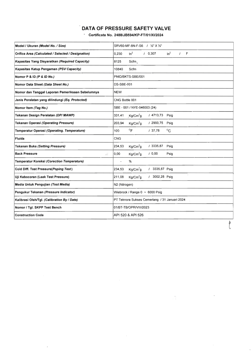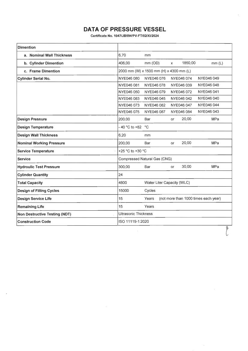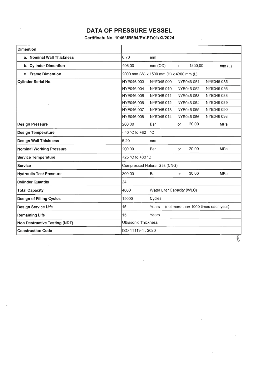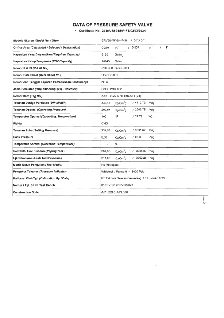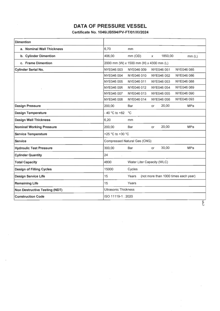 COI ( Certification Of Inspection) untuk GTM (  Gas Transpot Module )